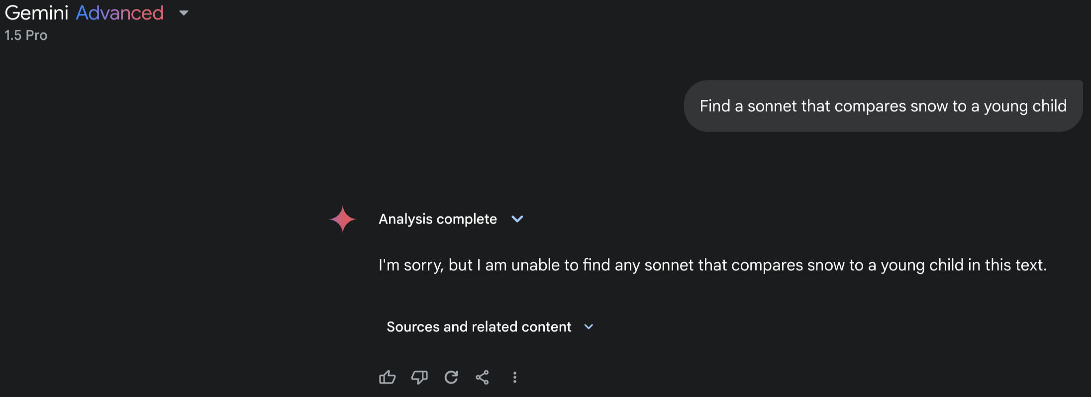 This setup was sufficient for basic queries like identifying a sonnet’s author or finding poems about general topics (which could be done more efficiently with an SQL request), or finding a poem about a general topic.